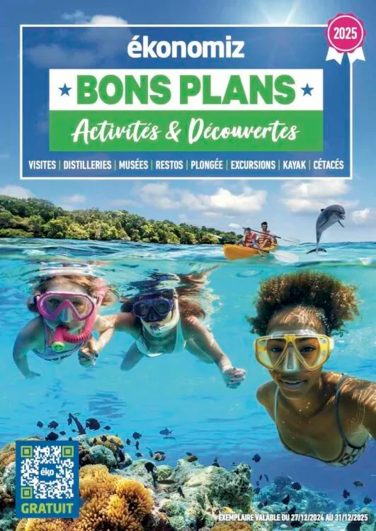 Le Guide des bons plans EKONOMIZ du 27/12/2024 au 31/12/2025 est disponible. Découvrez les activités à faire en Guadeloupe, dénichez…